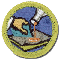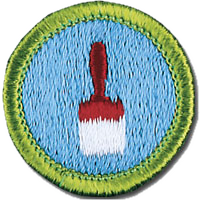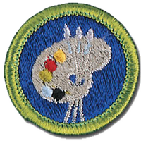 This merit badge concentrates on two-dimensional art, specifically drawing and painting in various media, including an introduction to design applications in the fields of graphic arts and industrial design, history and design principles, and how these fields relate to fine art.